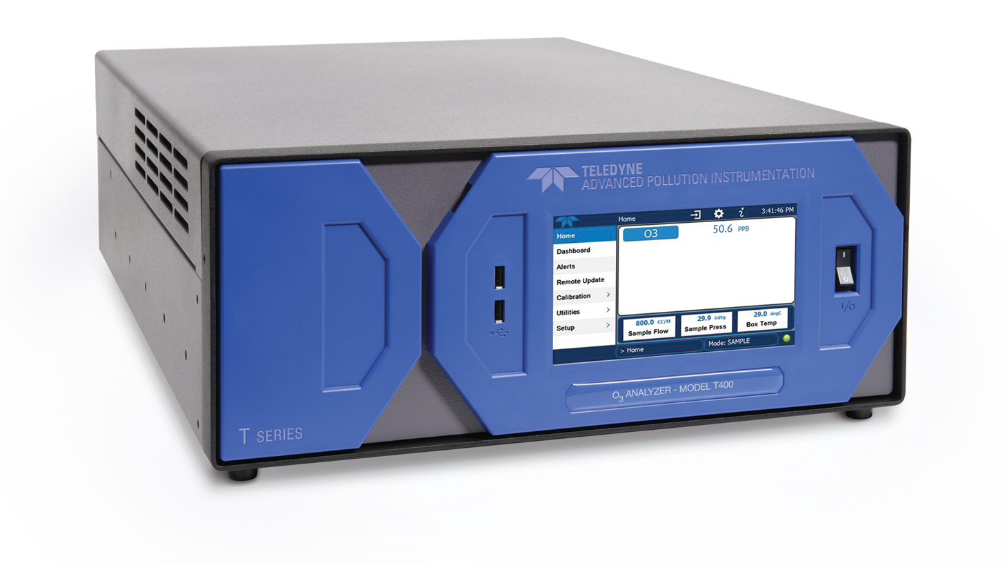 | Teledyne T400 Model T400 UV Emme analizörü, ortam havasındaki düşük ozon aralıklarını ölçmek için Beer-Lambert yasasına dayanan bir sistem kullanır. Bir 254 nm UV ışık sinyali, mevcut ozon miktarıyla orantılı olarak emildiği numune hücresinden geçirilir. Periyodik olarak, bir anahtarlama valfi, numune akışı ve ozon temizlenmiş bir numune arasındaki ölçümü değiştirir. Sonuç gerçek, kararlı bir ozon ölçümüdür. | |