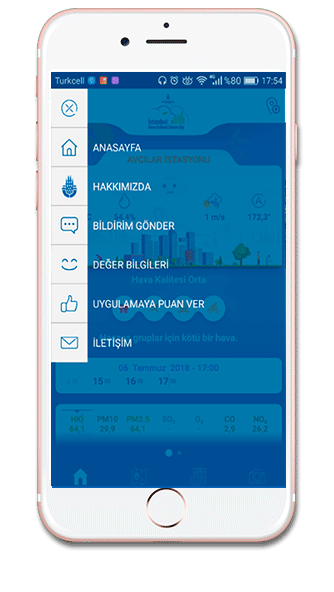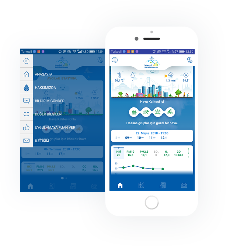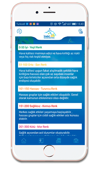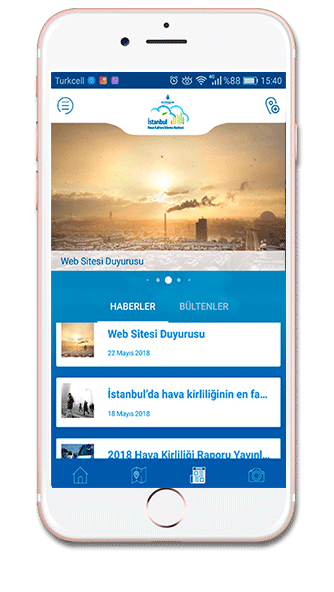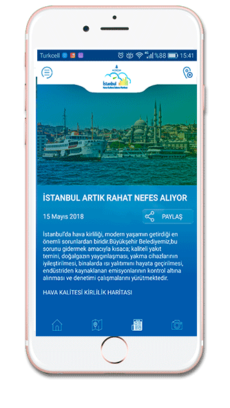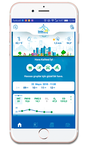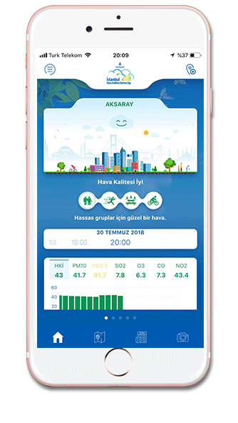 Hem IOS hem de android platformlarında bulunan uygulamamız ile İstanbul hava kalitesi hakkında bilgi sahibi olabilirsiniz.